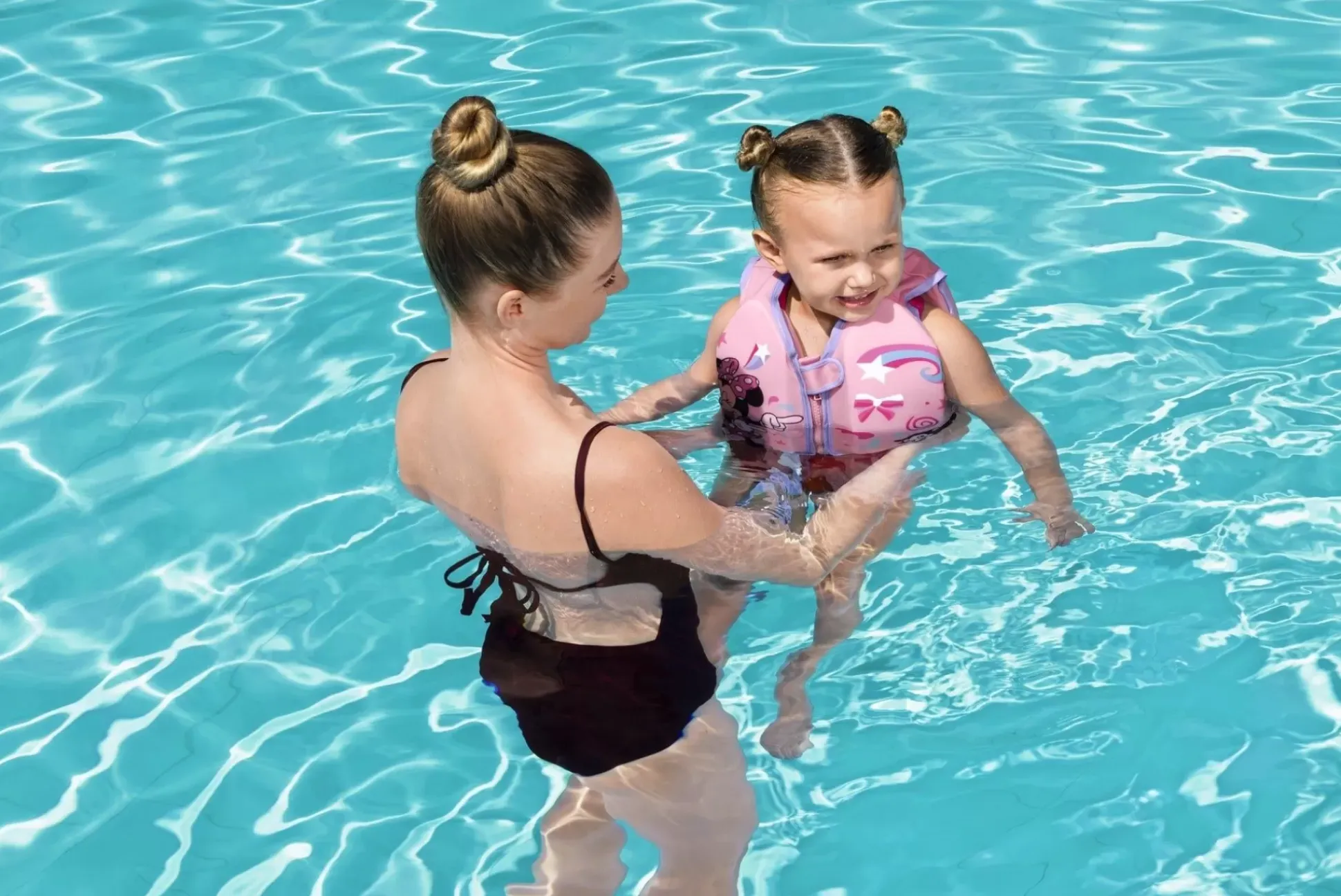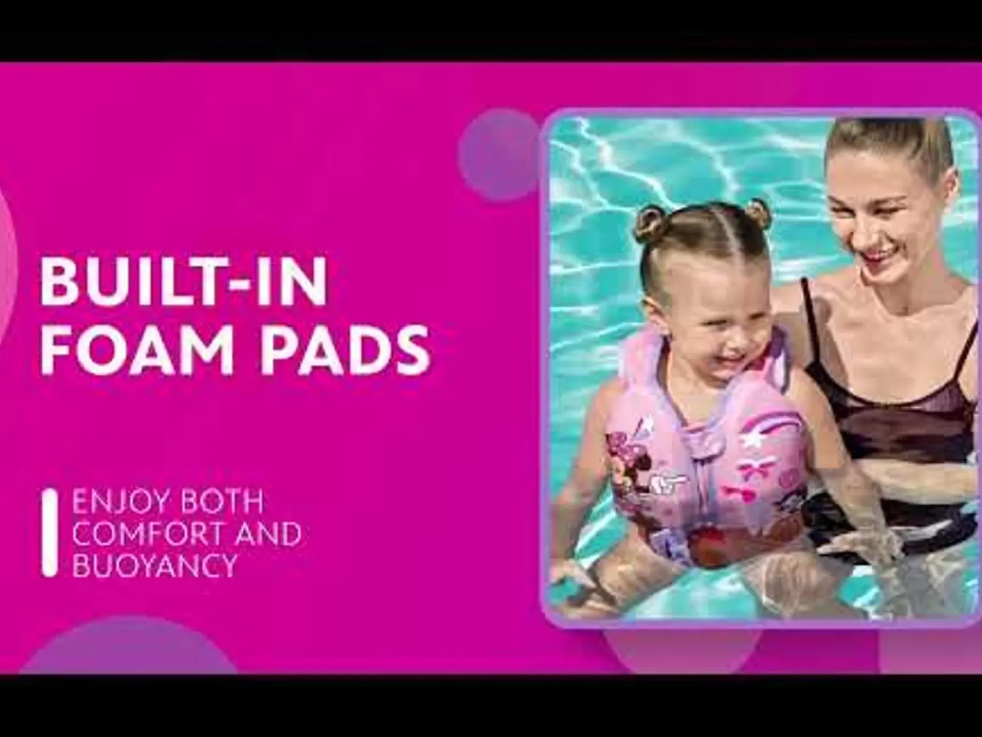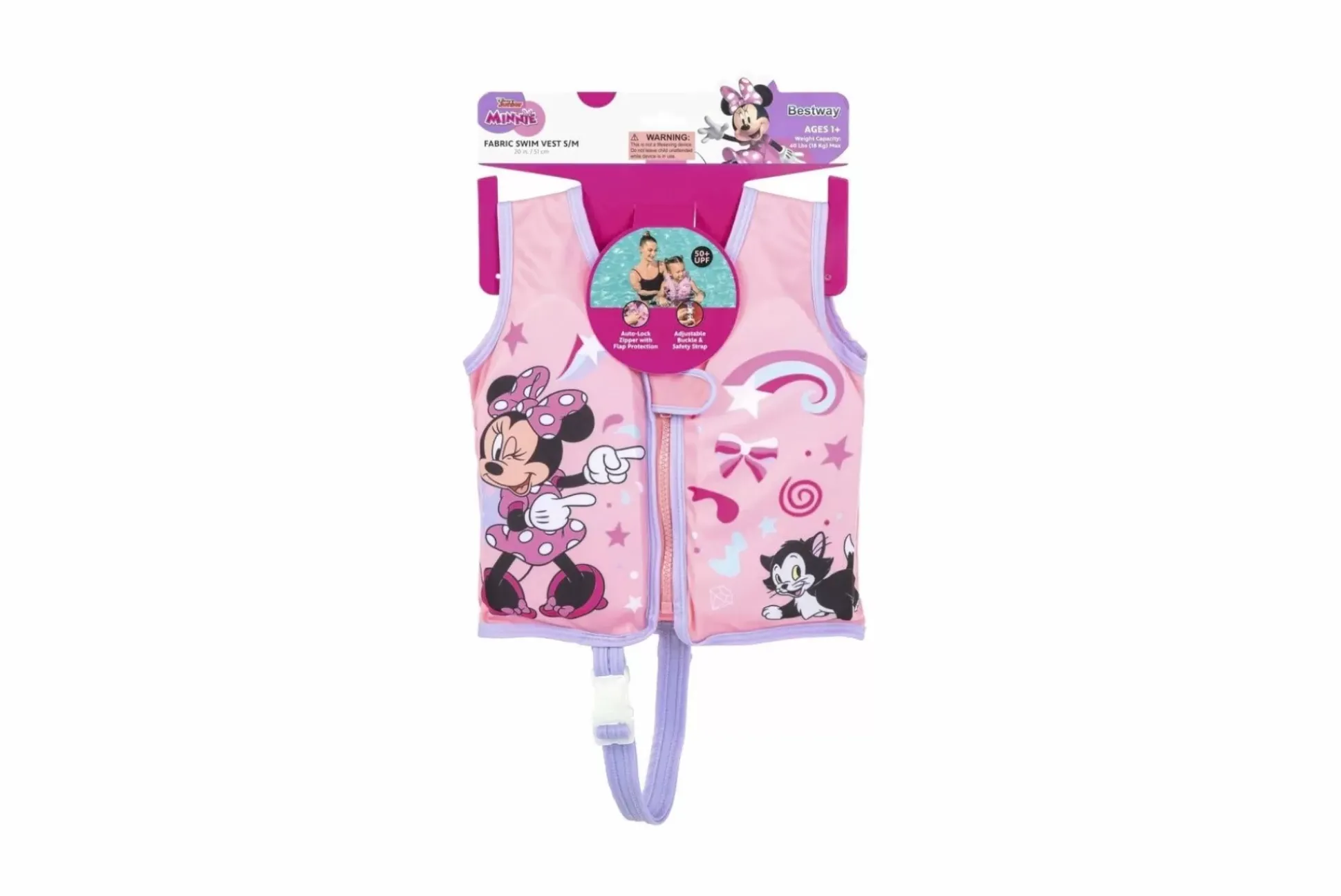 Get Your Child On The Path To Swimming Success And Make It A Fashionable And Fun Experience With Minnie Mouse! The Disney Junior® Mickey & Friends Minnie Mouse Fabric Kids Swim Vest Helps Young Children, Ages 1 And Up, Master The Basics Of Swimming And Pool Safety As Part Of The Bestway® Swim Safe Step By Step Learning Range. With Its Soft, Knitted Fabric And Built-In Foam Pads, Your Child Can Enjoy Both Comfort And Buoyancy As They Learn To Swim. It’S Also The Perfect Next Step On Your Child’S Swimming Journey So They Can Learn To Rotate Their Arms And Practice Paddling With Their Hands As They Progress To Step C. Safety Features: This Pink Fabric Swim Vest Includes 2 Adjustable, Quick Release Buckles For Safety, And A Durable, Auto-Lock Zipper With Flap Protection When Closed. The Fabric Is Upf 50+, Which Helps Block Harmful Uv Rays And Prevents Fading. Bestway Swim Safe Abc Program: The Bestway Swim Safe Abc Step By Step Program Begins With Step A Floats, Which Are For Babies And Toddlers Who Need The Maximum Amount Of Support. Step B Swim Vests Are For Toddlers Who Are Starting To Gain Confidence But Can’T Swim On Their Own Yet, And Step C Armbands Are For Kids Who Are Starting To Learn The Fundamentals Of Swimming. Learning To Swim Has Never Been So Safe And Fun!