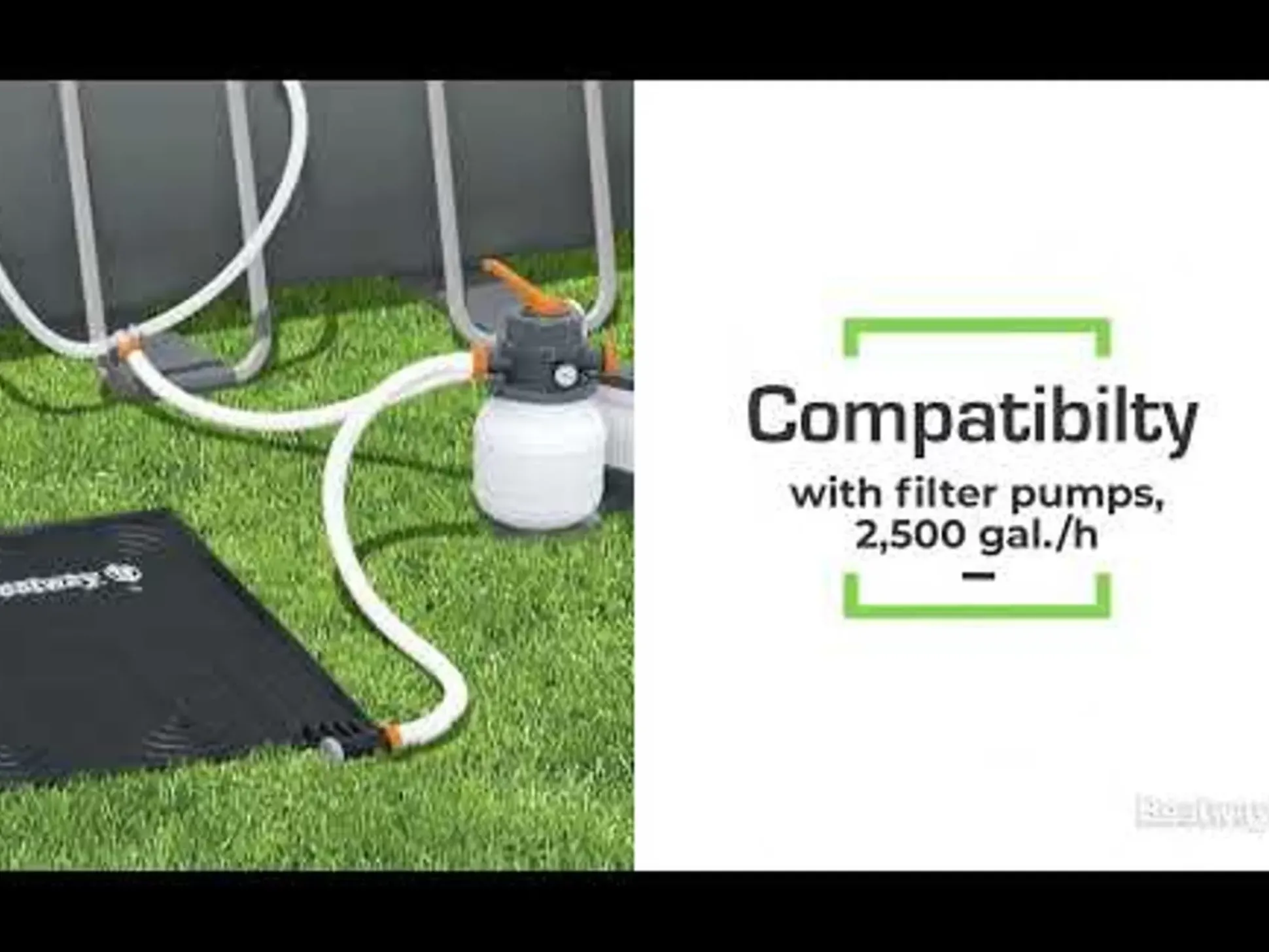 The Flowclear™ Clean Sun Powered Pool Pad Provides An Economical And Environmentally Friendly Way To Heat Swimming Pool Water By Harnessing The Energy Of The Sun. It Is Easy To Set Up With Included Adaptors Compatible With 1.25 In. (3.2 Cm) And 1.5 In. (3.8 Cm) Hoses. It Is Compatible With 2,500 Gal. (9,462 L) Filter Pumps And 2,000 Gal. (7,570 L) Sand Filters And Below, And It Works With All Above Ground Pools. The Pad Uses Solar Power To Increase Swimming Pool Water Temperatures By Approximately 5-9℉ (3-5℃) Depending On The Weather Conditions. With A Heating Area Of 15.72 Sq. Ft. (1.46 Sq. M), It Can Be Used In Multiples To Work Together For Different Size Pools.