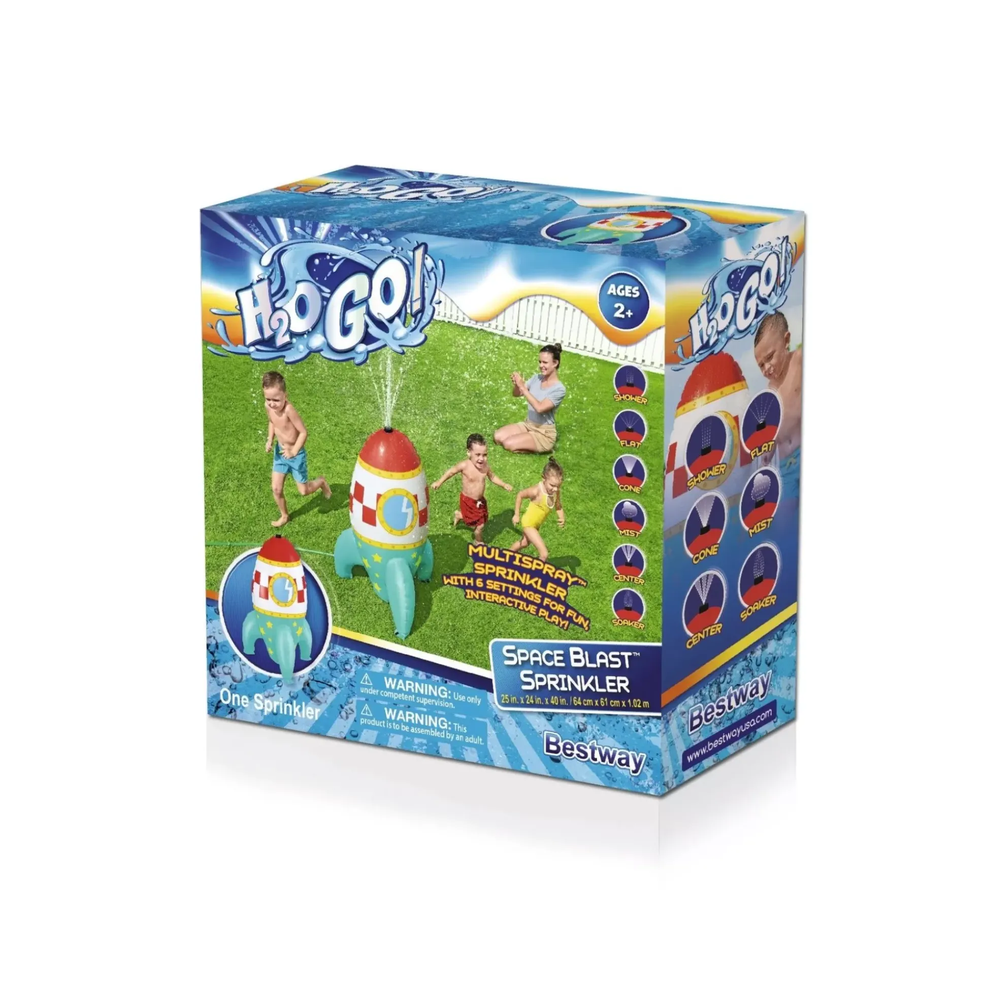 Blast Off And Have Some Space-Tastic Summer Fun With The H2Ogo!® Space Blast™ Sprinkler! Designed For Children Ages 2 And Up, Your Child Will Love The Colorful Rocket Shape And Pattern As They Laugh And Splash In Your Very Own Backyard. Simply Inflate The Rocket, Attach The Water Sprayer To A Garden Hose And The 3 Included Ground Stakes Will Keep The Sprinkler Stable As Long As Your Kids Want To Splash, Skip And Play. Plus, With The Multispray™ Sprinkler On The Top Of The Rocket, There Are Even More Ways To Play. Your Child Can Choose Between The 6 Different Water Patterns By Twisting The Dial For A Fun, Interactive Sprinkler Experience!
