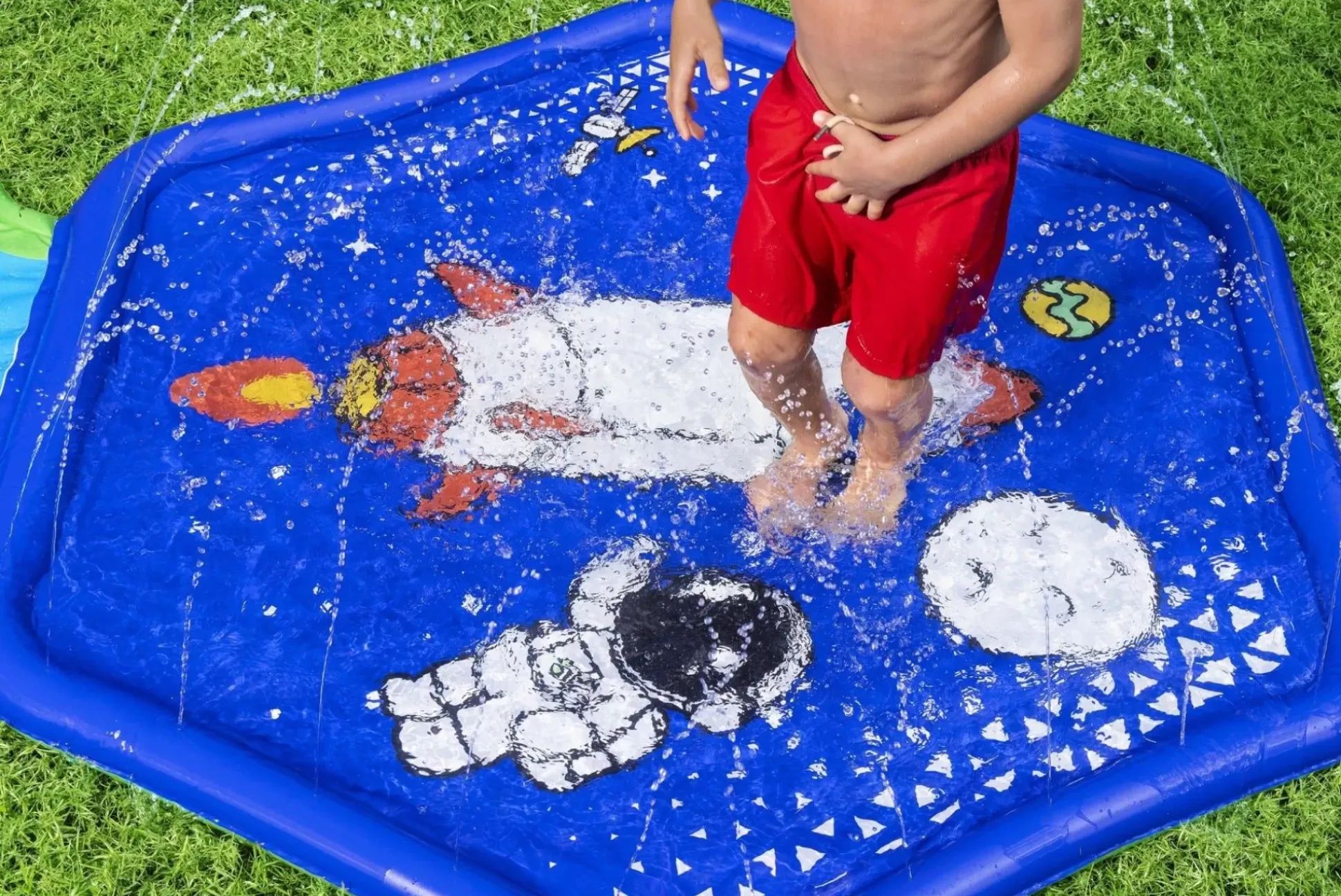 The H2Ogo!® Cosmic Adventure™ Splash Pad Is Ready For Take-Off! Help Your Child Explore Some Out-Of-This-World Fun Right In Your Own Backyard! This 2-In-1 Toy Features Multiple Ways To Play. Let Your Child Count Down To Blast-Off Using The Hopscotch Made For Splashing And Jumping, Or They Can Orbit The Splash Pad At The End Of The Slide Under A Meteor Shower Of Cascading Sprinklers. The Fun Space Theme Encourages Kids To Use Their Imaginations As They Embark On Intergalactic Adventures, While They Play Safely In Your Own Yard. Kids Can Select Their Favorite Way To Play, And They’Ll Be Splashing And Smiling All Day!