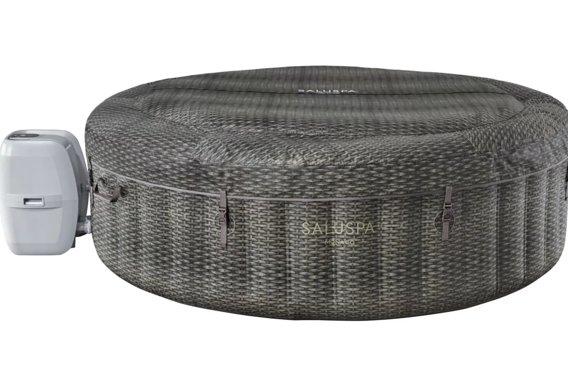After A Long Day, There’S Nothing More Relaxing Than Sinking Into Warm, Bubbling Water Right In Your Own Backyard. The Saluspa® Monaco Energysense Airjet™ Provides A Soothing Massage Experience For Up To 7 People, While Still Being Quick And Easy To Set Up. This Spa Reaches Up To 104ºf (40ºc) To Provide Ultimate Relaxation As You Are Surrounded By 180 Airjet Massage Bubbles. Simply Attach The Pump And Watch As It Inflates.Increased Energy-Efficiency:This Spa Includes Two Insulated Covers For You To Choose From – A Standard Cover And A Specially Constructed Energysense® Cover. The Energysense Cover Is Up To 40% More Energy-Efficient Than Similar Inflatable Spas, So Your Water Stays Hot And Your Energy Bill Stays Low. Control At Your Fingertips: This Unique Spa Can Be Controlled From Your Smart Device Through The Bestway Smart Hub™ App. This Innovation Makes This Monaco One Of The Most Convenient Spas On The Market. The App Allows You To Set Your Spa To The Perfect Temperature, Activate The Power Saving Timer, Run The Water Filter And Control The Airjet Massage System – All From The Palm Of Your Hand, Wherever You Are. Soothing Massage System: The Airjet System Features 180 Jets Which Release Bubbles From The Bottom Of The Spa To Create A Warm, Bubbling Hot Tub Environment. These Soothing Bubbles Will Help You Relax And Unwind Right From The Comfort Of Your Home. Designed To Provide The Ultimate Comfort And Relaxation Experience, This Massage System Features Two Intensity Levels, So Your Relaxation Time Is Completely Customizable.Durable Construction: Maxhold™ Fabric Internal Beams Provide Superior Air Pressure Retention, Stability And Lightweight Portability. This Construction Offers Exceptional Stretch Resistance, Allowing The Spa To Maintain Its Intended Shape Over Time, No Matter How Many Times You Inflate And Deflate It. Surrounded By A 3-Layer Duraplus™ Outer Layer, This Spa Is Proven To Be Puncture And Damage Resistant. Innovative Winterizing Technology:The Included Freeze Shield™ Automatic Heating Function Prevents Inner Components From Freezing During Colder Temperatures. Designed With Innovative Winterizing Technology, The System Will Keep The Internal Temperatures Between 42º And 50ºf (6º And 10ºc) To Prevent Damage.Prioritizing Safety:Our Spas Feature A Ground Detection System That Ensures The Spa Is Used With An Outlet Having A Proper Ground Connection, Providing Additional Electric Current Protection.Contents: Equipped With A Pump That Quickly Inflates The Spa, Heats It Up, Runs Filtration And Controls The Massage System, This Spa Is Both Easy And Convenient. The Pump Can Easily Be Reached From Inside The Spa And Features Cup Holders For Drinks And Snacks. Also Included Is A Chemconnect™ Dispenser That Maintains Clean, Healthy Water By Evenly Dispersing The Proper Amount Of Chlorine. The Original Premium Portable Spa™:Saluspa Is The Original Manufacturer Of The World’S First Premium Portable Spa. Over A Decade Of Advanced Engineering Innovations Have Built A Name That Consumers Have Grown To Trust.