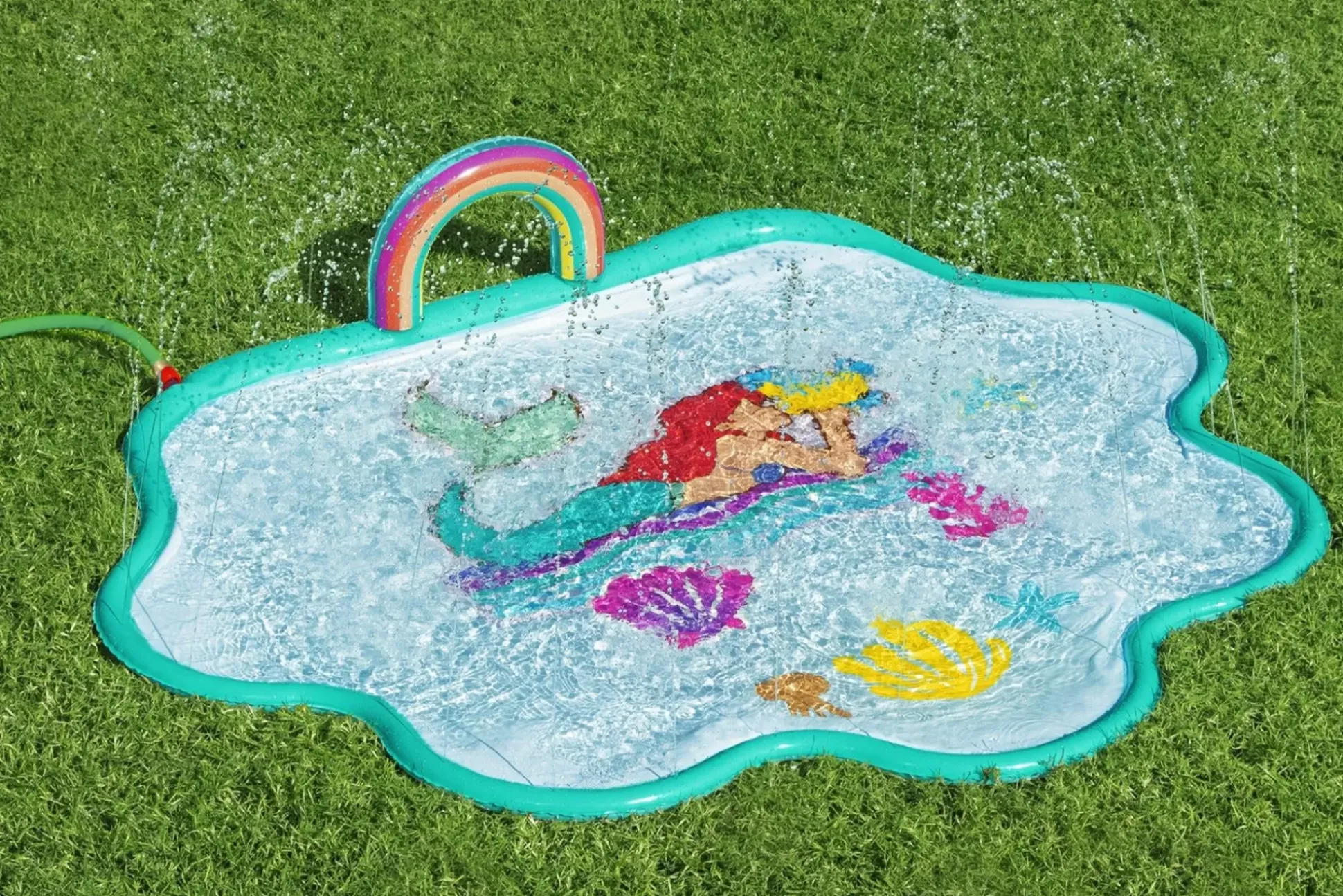 Stay All Day In The Sun As Your Children, Ages 2 And Up, Wander Free And Splash Around On The Disney® Little Mermaid Splash Pad! Simply Attach A Garden Hose (Garden Hose Not Included) To The Water Sprayer For Easy Assembly, And Watch As The Sprinklers Surrounding The Splash Pad Create Cascades Of Water Flowing Toward The Center Of The Splash Pad With A Gentle Fountain Effect. Whether You’Re Enjoying It In Your Own Backyard Or Bringing It To A Friend’S House, The Disney Little Mermaid Splash Pad Will Give Your Child Hours Of Fun And Play Until It’S Time To Stash It Away.