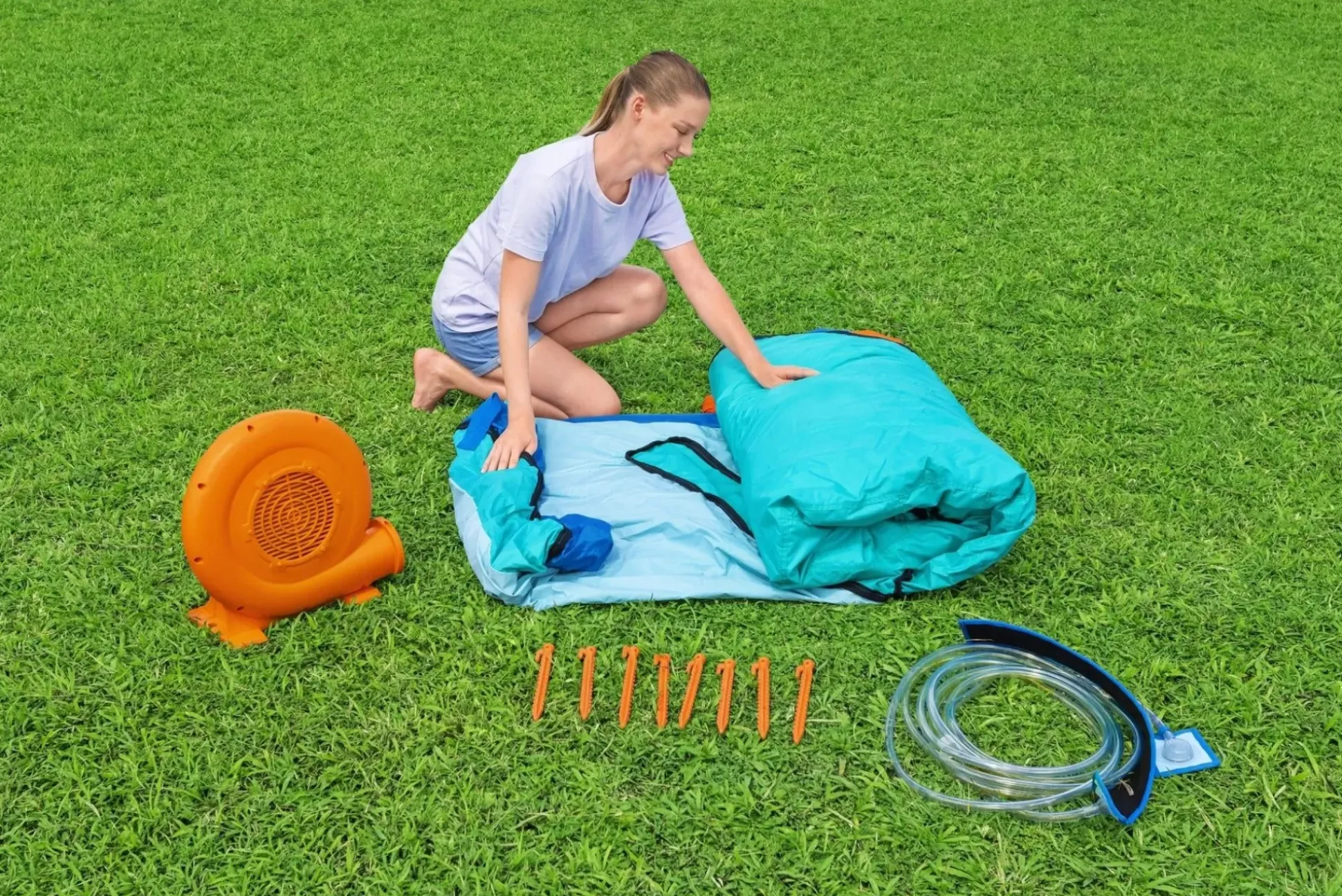 Climb Into The Coolest Backyard Hangout In Town – The H2Ogo!® Hydrohangout™ Mega Water Park! From The Shaded Clubhouse To The Twisty, Slippery Slide With Dedicated Sprayer, Your Kids Can Splash, Play And Then Climb Up The Safe, Durable Climbing Wall Featuring Grab Handles And Footholds. Or, They Can Soak In The Large Splash Pool, And Jump Through A Spraying Wall Of Cool, Refreshing Water As They Play The Day Away.Featuring Durable, Double-Stitched, Colorful Material, Kids’ Imaginations Can Run Wild On The Hydrohangout Mega Water Park, And You Can Feel Confident This Outdoor Toy Will Last For Many Summers To Come Even As They Romp, Jump And Climb For Hours On End.With The Hydrohangout Mega Water Park’S Heavy-Duty Blower And Quick Set Up, Your Kids Will Be Hanging Out With Their Neighborhood Crew In Minutes. No Water No Problem! This Exciting, Entertainment Structure Is Fun With Or Without Water, So Kids Can Enjoy Outdoor Play Year-Round!