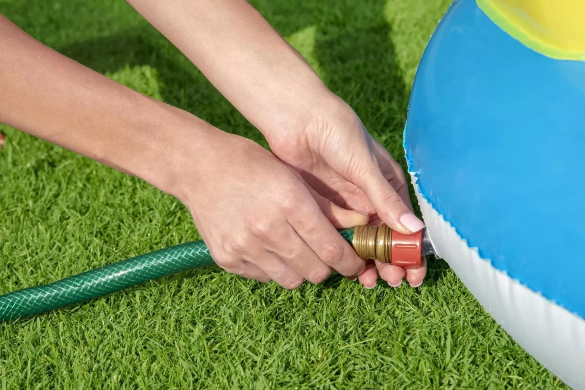 The H2Ogo!® Rainbow ‘N Shine Play Center Is Perfect For Hours Of Fun Under The Sun! With A Detachable Slide And A Cushioned Landing Area, Kids Will Be Begging To Go Outside And Play. Plus, An Extra-Large Kiddie Pool Means A Day Full Of Water-Filled Fun! Attach A Garden Hose And Water Will Spray Out Of The Sun, Adding An Extra Splash To Play Time. And When The Fun Is Done, Simply Drain The Water Through The Drain Valve And Fold Up For Easy Storage.