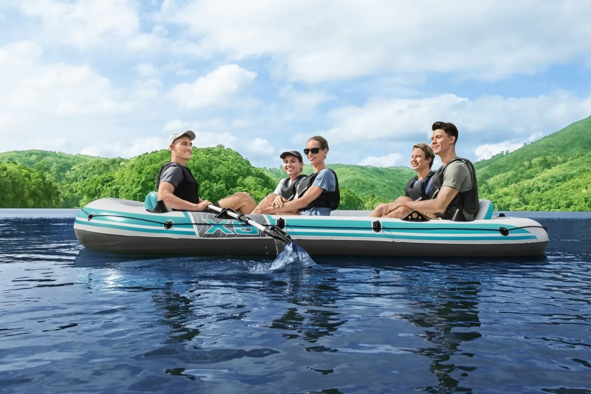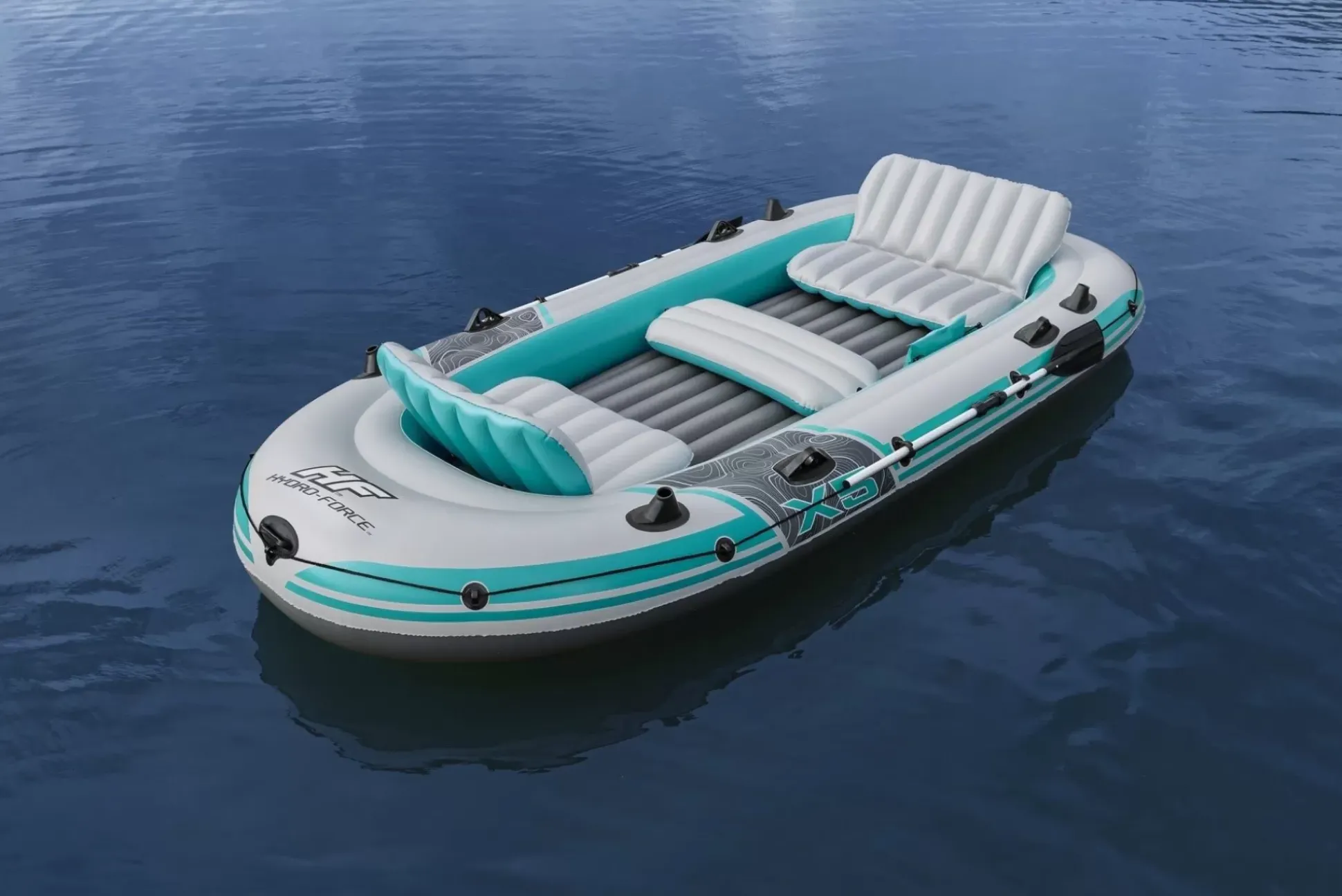 Gather Your Friends And Get Ready To Ride The Rapids With The Hydro-Force™ Adventure Elite™ X5 Raft Set! Perfect For Up To 5 Adults, You Can Count On The Durable Material, Comfortable, Inflatable Seats, And Convenient Design To Give You A Safe And Fun Ride!Durable & Reliable Material:It’S Easy To Feel Confident When You Hit The Water And Navigate Rapids Because Of The Hydro-Force Adventure Elite X5’S Durable Inflata-Shield Pro™ Enhanced Material. This Rigid Material Provides Excellent Puncture Resistance While Limiting Stretching And Providing Maximum Stability. You And Your Crew Will Be Able To Withstand The Bumps And Splashes Of The Journey With A Material That Gives You The Extra Grip You Need. Oars & Added Features:The Inflatable Raft Also Includes Built-In Fishing Rod Holders And Sturdy Oarlocks So You Can Float And Fish With Ease. Guide Your Raft Along The Water With A Pair Of Included Oars And Use The Oar Clasps To Keep Them In Place.Comfortable & Compact Design:With The 2 Comfortable, Inflatable Seats With Backrests And A Removable Cushion, The Inflatable Raft Set Also Provides An Added Level Of Comfort To Make The Ride More Enjoyable. When You’Re Done, Dry It Off, Fold It Up And Easily Stash It Away In The Carry Bag Until Your Next Adventure Together!