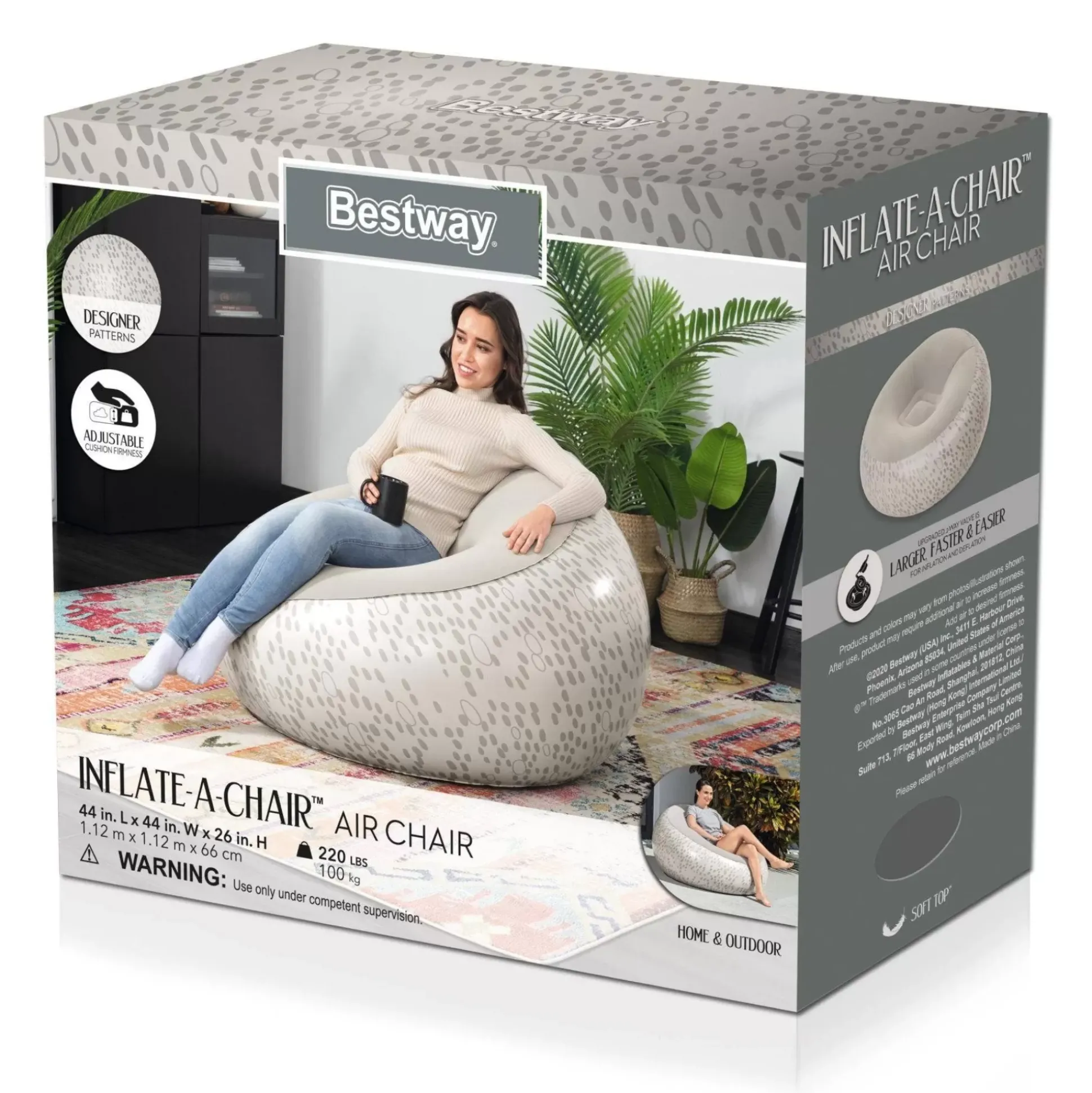 The Inflate-A-Chair By Bestway® Is Easy To Set Up, Requires Minimal Storage And Above All, Is Fun! With Sturdy Coil Beam Construction And A Comfortable Sitting Surface This Chair Is Perfect For When Guests Come Over, To Fill Up A Vacant Room, To Watch The Big Game Or As Dorm Room Furniture. Suitable For Indoor And Outdoor Use.