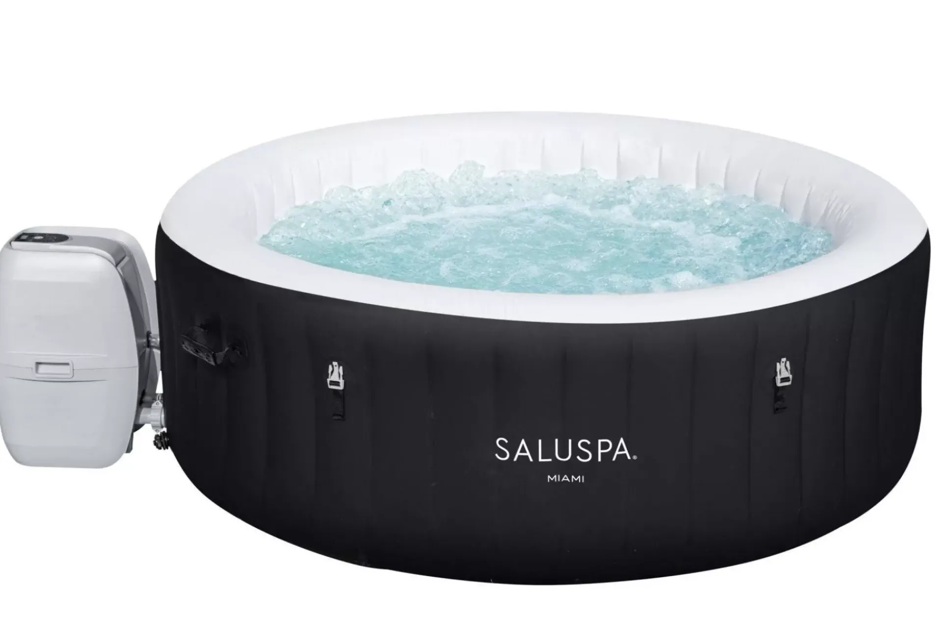 After A Long Day, There’S Nothing More Relaxing Than Sinking Into Warm, Bubbling Water Right In Your Own Backyard. The Saluspa® Miami Airjet™ Provides A Soothing Massage Experience For Up To 4 People, While Still Being Quick And Easy To Set Up. Simply Attach The Pump And Watch As It Inflates. Soothing Massage System:The Airjet System Features 120 Jets Which Release Bubbles From The Bottom Of The Spa To Create A Warm, Bubbling Hot Tub Environment. These Soothing Bubbles Will Help You Relax And Unwind Right From The Comfort Of Your Home. Durable Construction:This Spa’S Inflatable Walls Are Made Of Durable, Puncture-Resistant, Duraplus™ Material Which Prevents Damage And Retains Shape After Repeated Inflation And Deflation. The Included Freeze Shield™ Automatic Heating Function Prevents Inner Components From Freezing During Colder Temperatures Ensuring You Can Enjoy Your Spa Year After Year. Contents:Equipped With A Pump That Quickly Inflates The Spa, Heats It Up, Runs Filtration And Controls The Massage System, This Spa Is Both Easy And Convenient. The Pump Can Easily Be Reached From Inside The Spa And Features Cup Holders For Drinks And Snacks. Also Included Is A Chemconnect™ Dispenser That Maintains Clean, Healthy Water By Evenly Dispersing The Proper Amount Of Chlorine. To Top It All Off, The Miami Spa Comes With A Reinforced Cover That Locks In Heat While Not In Use, As Well As Keeping Dust And Debris From Collecting On The Water.