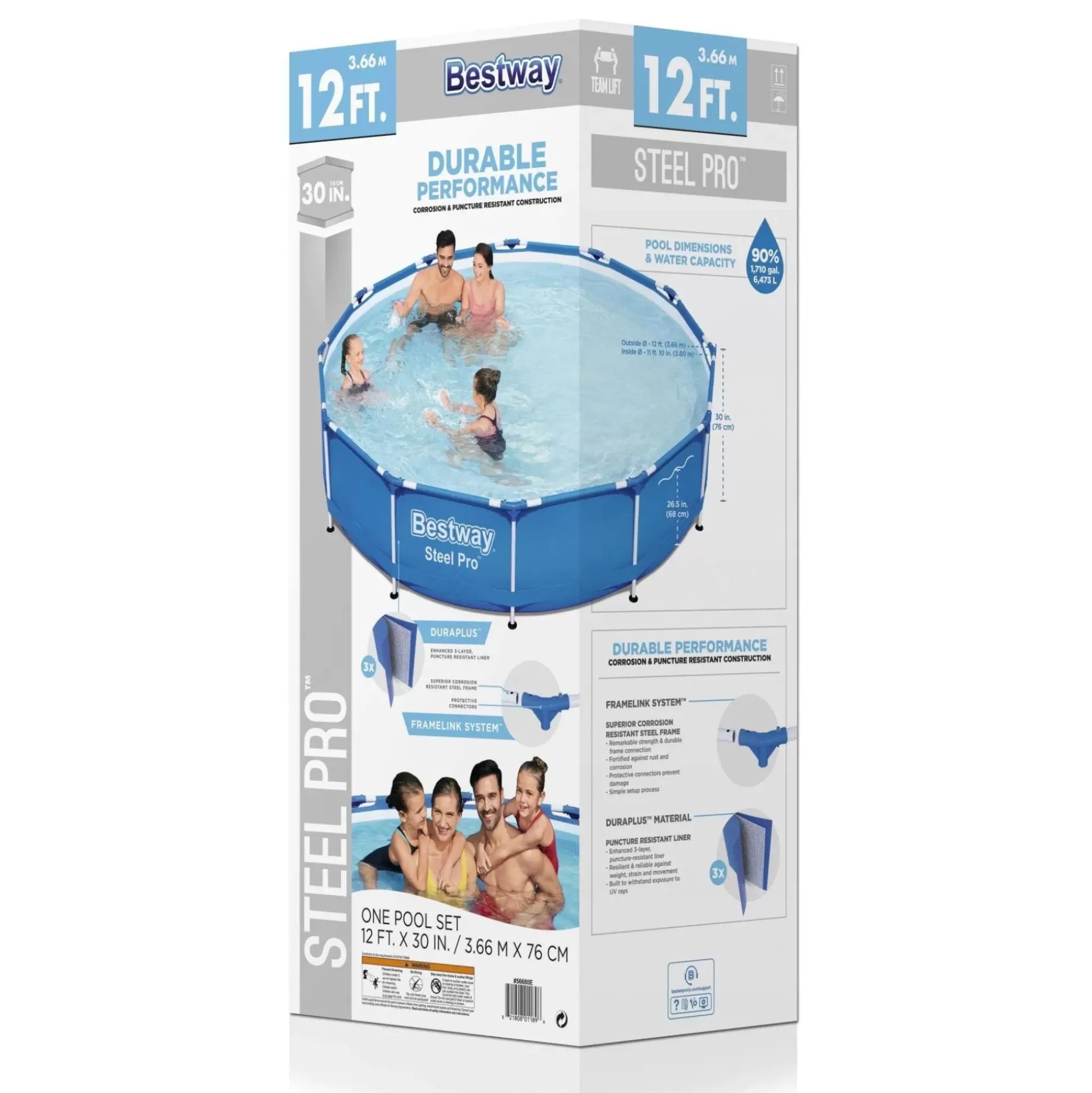 It Doesn’T Get Any Better Than Having Your Very Own Pool In Your Backyard! The Bestway® Steel Pro™ Above Ground Pool Offers An Ultra Durable Option At A Great Price. Durable Constructionthe Corrosion-Resistant Steel Frame Is Equipped With Our Framelink System™ For A Sturdy And Secure Frame Connection. The Duraplus™ Liner Is Made Of Durable Material That Is Reinforced For Strength And Puncture-Resistance. Additional Featuresthis Above Ground Pool Set Also Comes Stocked With A Filter Pump To Keep The Pool Water Looking Crystal Clear. Plus, This Pool Is Very Simple To Set Up And To Take Down For Off-Season Storage. No Tools Are Required, And A Hose Connects To The Built-In Flow Control Valve To Quickly And Easily Drain Away Pool Water. Spend Your Summer On The Water In This Bestway Steel Pro Pool!
